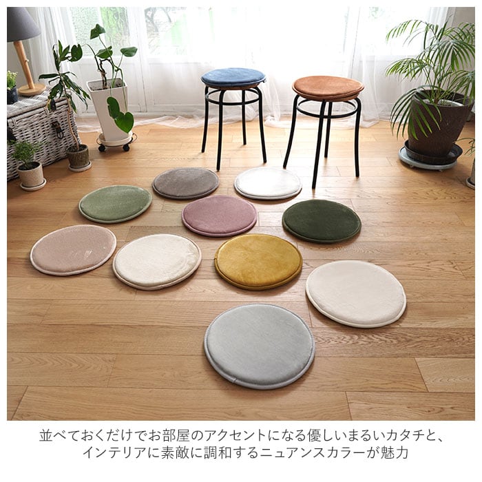 ・床やソファに並べておくだけでお部屋のアクセントになる優しいまるいカタチと、インテリアに素敵に調和するニュアンスカラーが魅力。