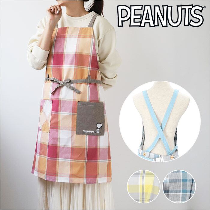 キャラクター エプロン 前結び 通販 前掛け 前リボン 前掛 ポケット 刺繍 キャラ かわいい スヌーピー 保育士 レディース たすき掛け カン止め 家事 お稽古 習い事