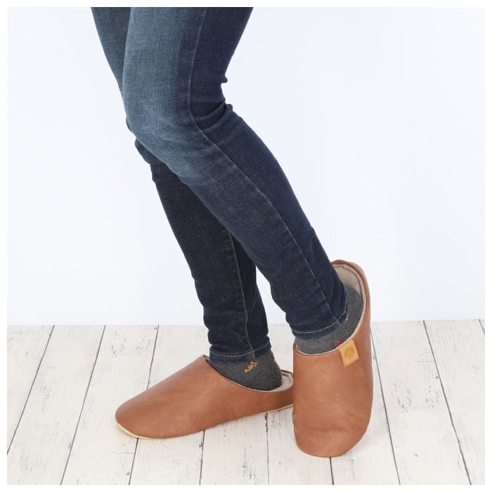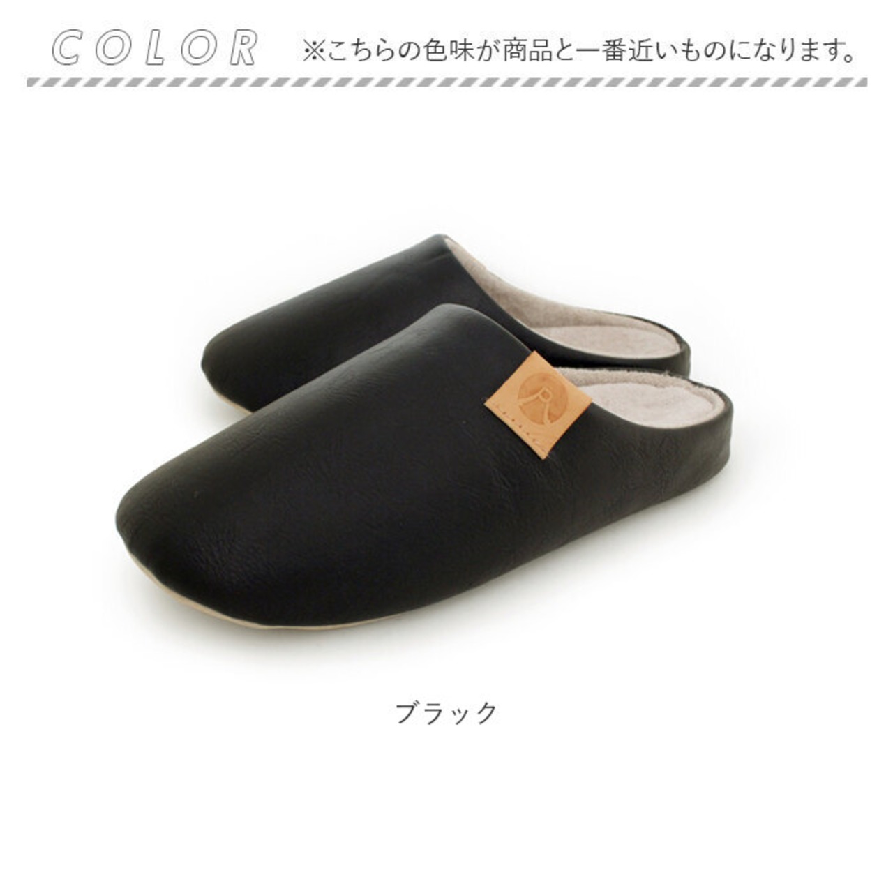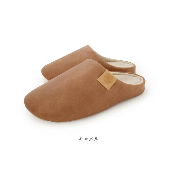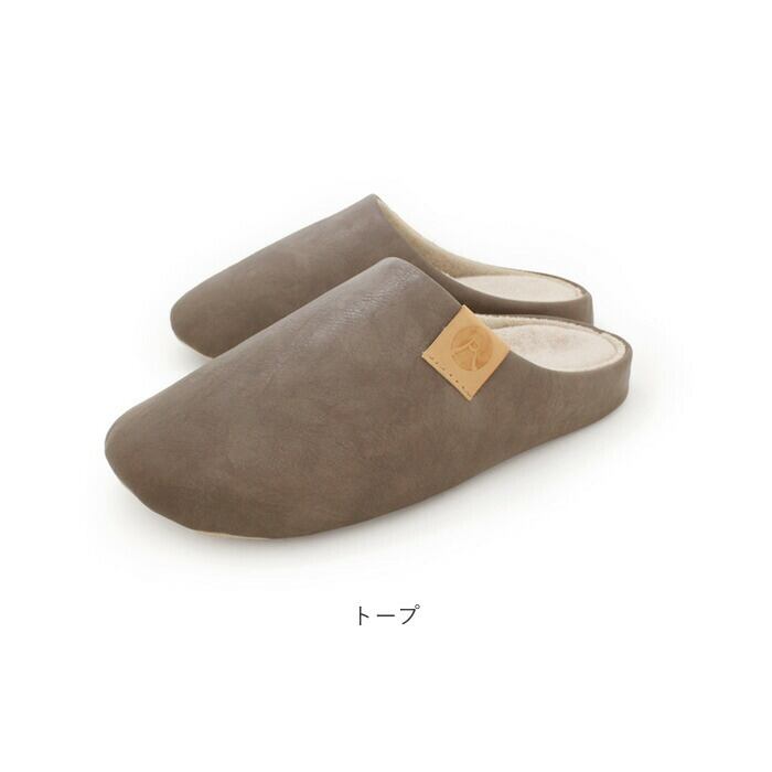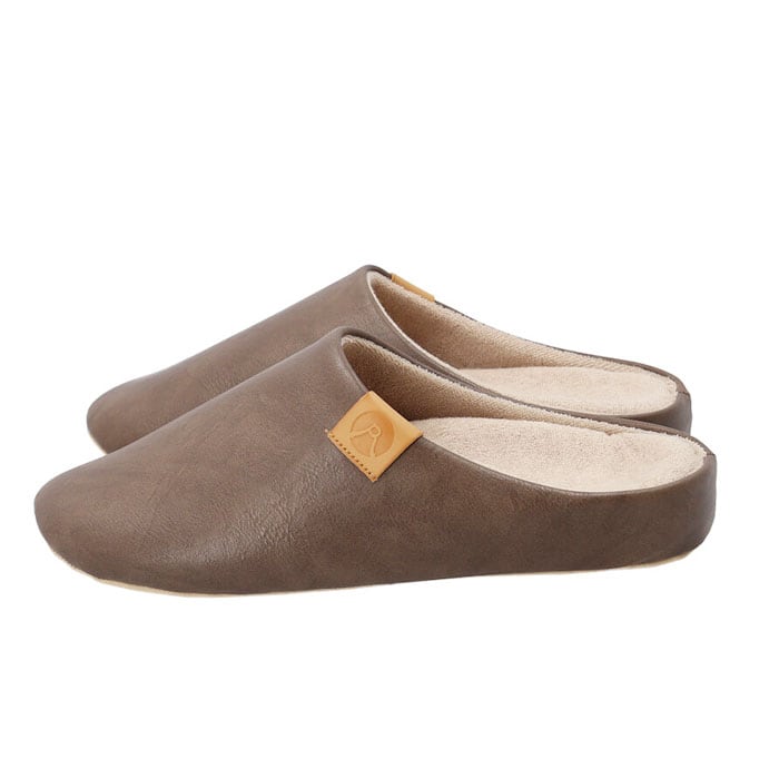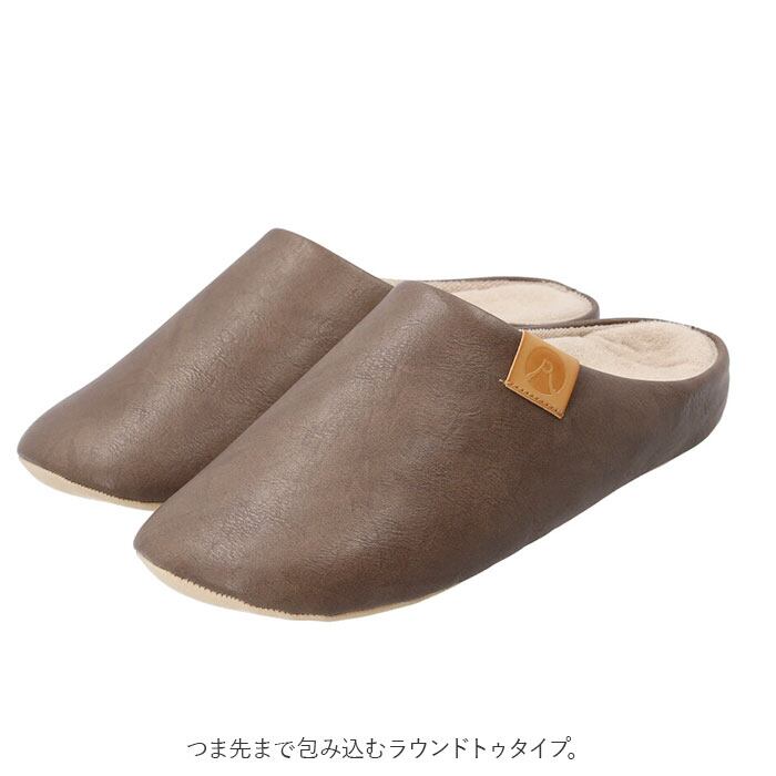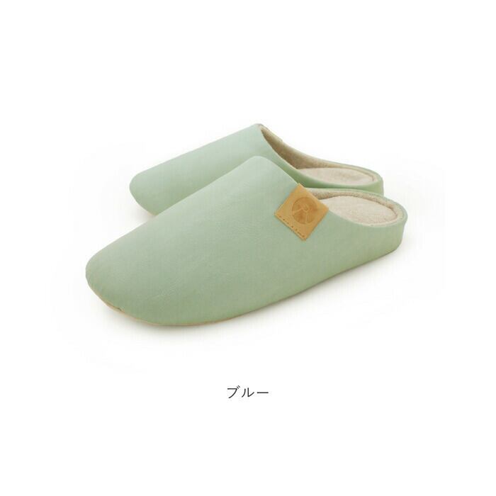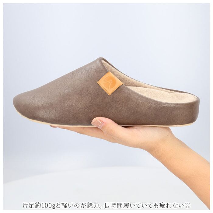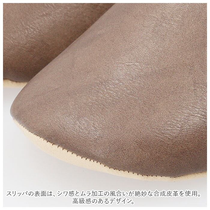 ・スリッパの表面は、シワ感とムラ加工の風合いが絶妙な合成皮革を使用。高級感のあるデザイン。