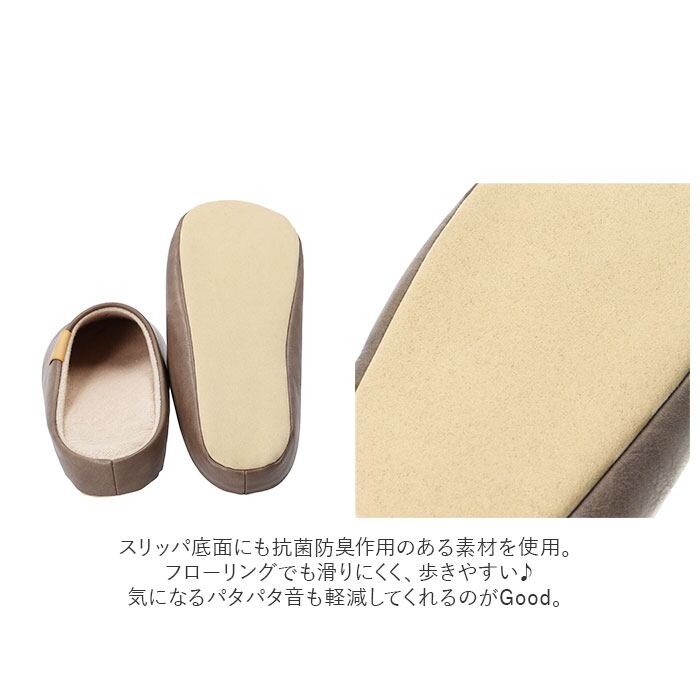 ・スリッパ底面にも抗菌防臭作用のある素材を使用。フローリングでも滑りにくく、歩きやすい♪気になるパタパタ音も軽減してくれるのがGood。