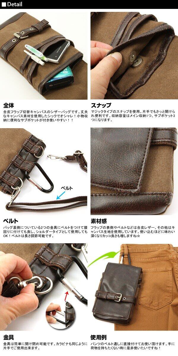 軽くシワ加工が施されていてビンテージ風の雰囲気があるシザーチョークです。付属ショルダーで斜めがけにしたり、本体のナスカンをベルト通しに着けたり、お好みに合わせてお使い下さい♪スマホ・財布など貴重品だけ身につけておくのにとっても便利です!どんなスタイルにも合わせやすいデザインですので、ちょっとしたお出かけにお勧めです。