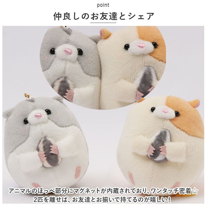 ・アニマルのほっぺ部分にマグネットが内蔵されており、ワンタッチ密着☆2匹を離せば、お友達とお揃いで持てるのが嬉しい!