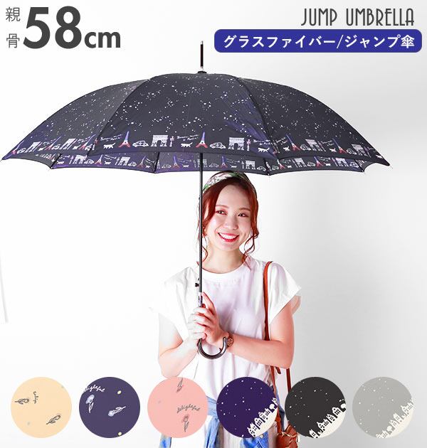 傘 レディース 長傘 ワンタッチ 通販 おしゃれ 雨傘 グラスファイバー骨 軽い 軽量 ジャンプ傘 58cm かわいい 丈夫 耐風 ドット 水玉 キャット 猫 かさ アンブレラ 長かさ 婦人傘 折れにくい