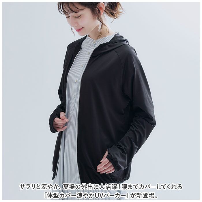 ・サラリと涼やか、夏場の外出に大活躍!腰までカバーしてくれる「体型カバー涼やかUVパーカー」が新登場。