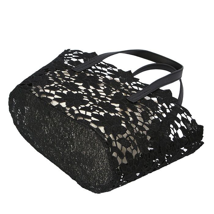 ・バッグのボディにはボタニカルモチーフのレース素材を全面に使用。バッグの向こう側が透けて見える、涼し気な雰囲気がGOOD♪