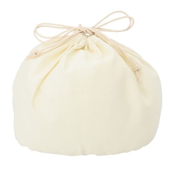 ・小物の目隠しにちょうどいい、バッグ内側にピッタリサイズの巾着が付属。巾着を取り外せば、シースルー仕様でも楽しめる。
