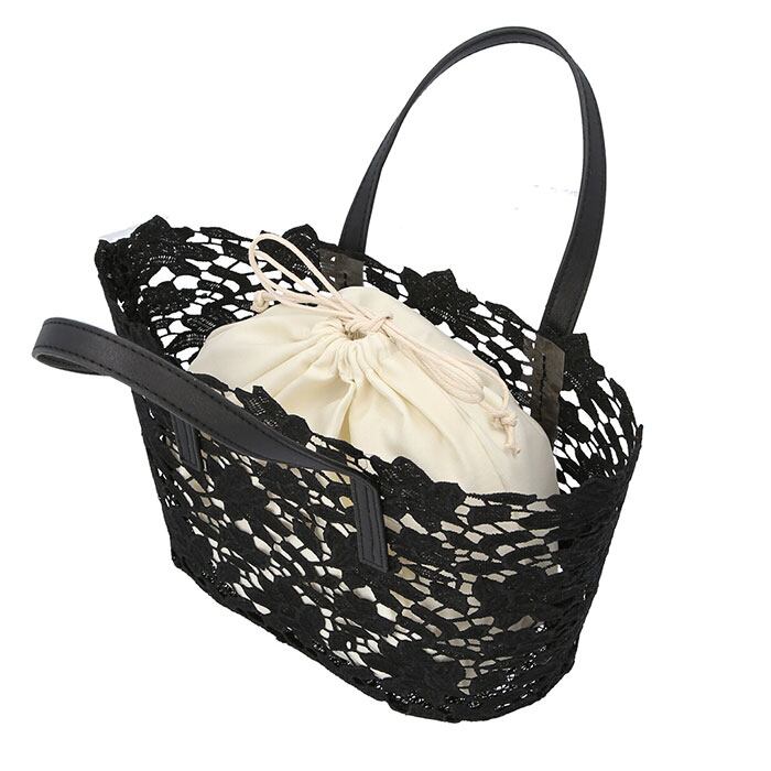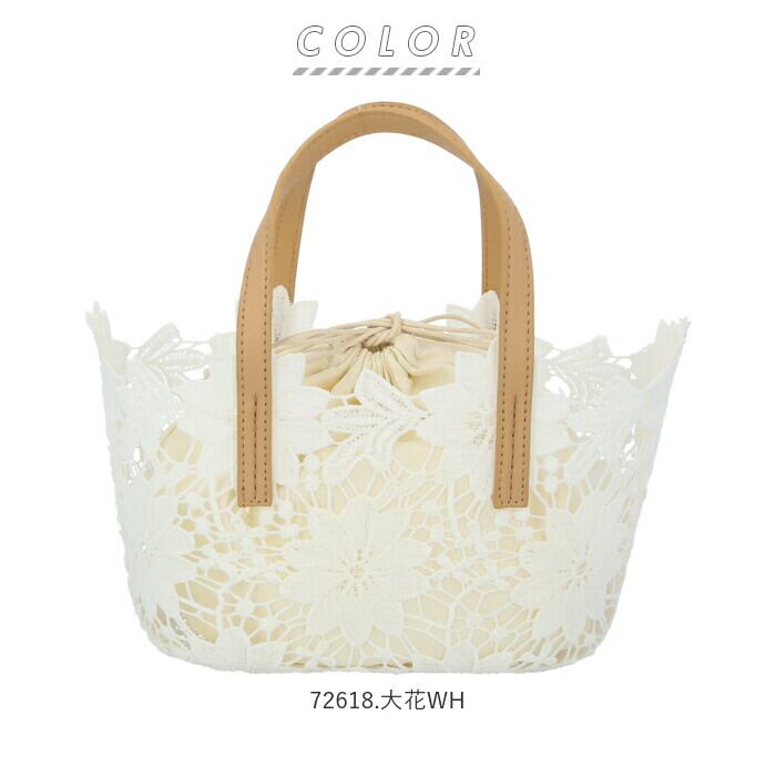 ハンドバッグ レディース 通販 トートバッグ 小さめ レースバッグ 大花 S DRAWER PLUS ドロワープラス 軽量 レース おしゃれ 大人 かわいい 巾着 ミニバッグ 花柄 ガーリー シンプル 上品 きれいめ カジュアル ナチュラル