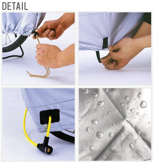 汚れ防止に!サビ防止に!防犯に!大活躍する雨除けカバーのキッズサイズ。台風や強風でも飛ばされにくい自転車カバーは丈夫なポリエステルの平織り生地を使用しています。ビニールやナイロンの一枚ものの自転車保護カバーとは違い、破れにくいのがうれしいところ。なんとビニール製の5.2倍の強度!!強風が吹いてももう破れて飛んでいったりしません。絞り式のひもとロック用の鍵穴が盗難防止にもいたずら防止にも役立ち、飛んでいかない!梅雨にも平気な雨濡れ防止カバー。