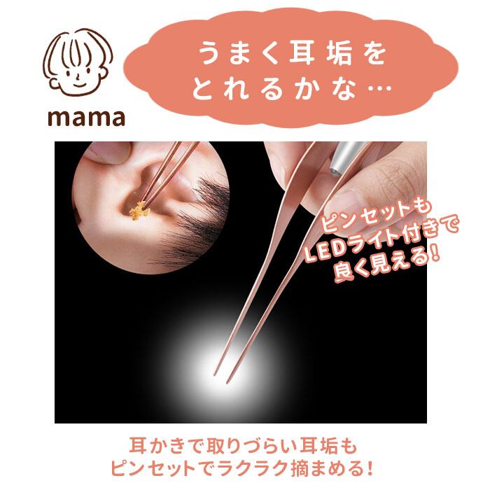 ・耳の中を明るく照らしてくれるので、お子様の耳掃除がとっても楽にできる。