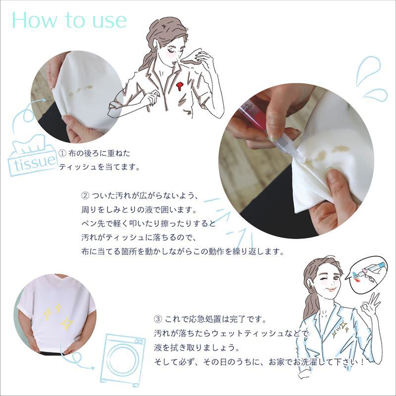 ・外出先での応急処置に携帯できる衣類用シミとり剤。大人気shimitori。
