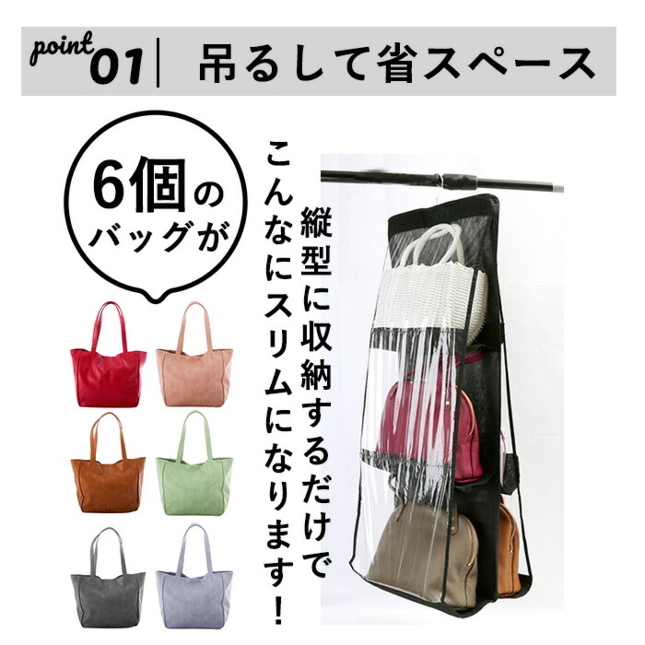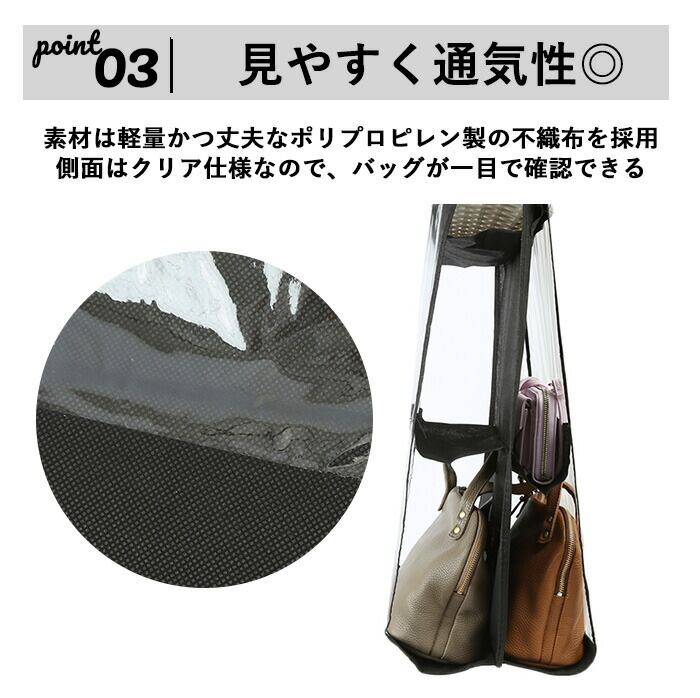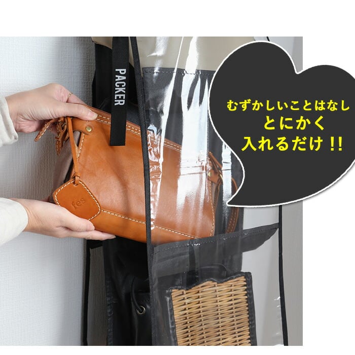 ・側面はクリア仕様なので、バッグが一目で確認できるのも高ポイント。コーディネートを決めるのも、出し入れもとっても楽ちん!