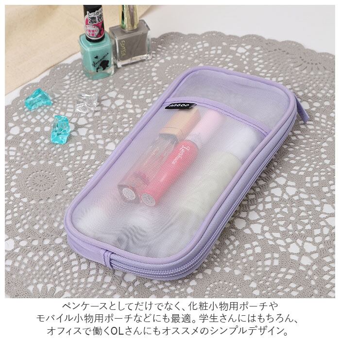 メッシュ ペンケース かわいい 通販 筆箱 ペンポーチ ふでばこ 化粧ポーチ コスメポーチ クリア 透明 ケース ポーチ 透明ペンケース おしゃれ シンプル かわいい 可愛い 高校生 中学生 女の子 ステーショナリー 筆記具 筆記用具 文房具 文具 机上用品 文具収納 日用品雑貨