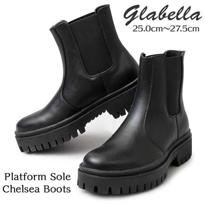 グラベラ ブーツ メンズ glabella GLBB-211 通販 ブランド 厚底 ショートブーツ サイドゴアブーツ メンズブーツ おしゃれ きれいめ カジュアルシューズ シンプル 5センチ ヒールブーツ 冬 フェイク レザー 紳士靴 メンズシューズ くつ シューズ