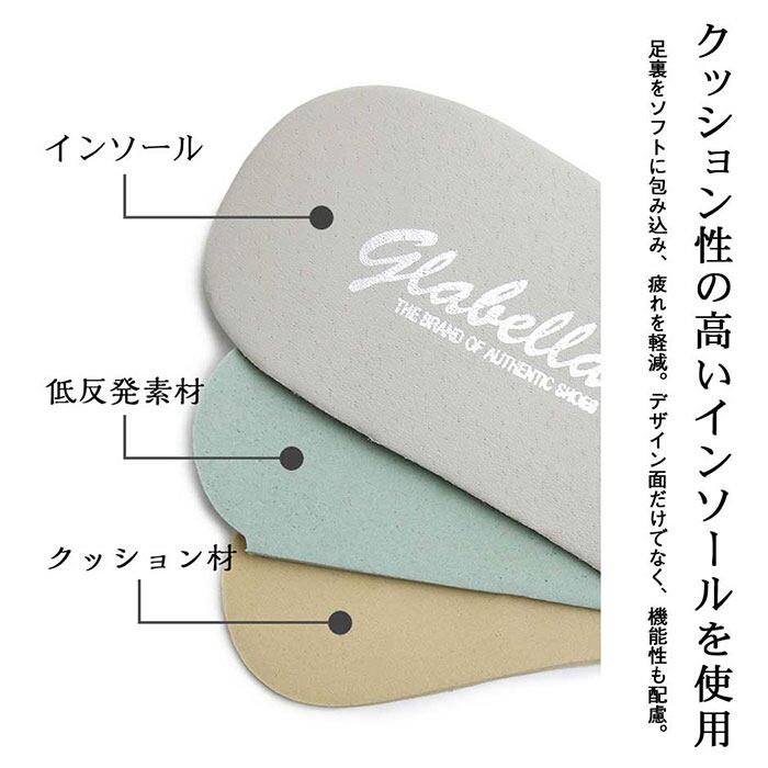 ・インソールには、かかと部分に程よくクッション性のある素材を使用。足裏をソフトに包み込んでくれて、足の疲れを軽減!