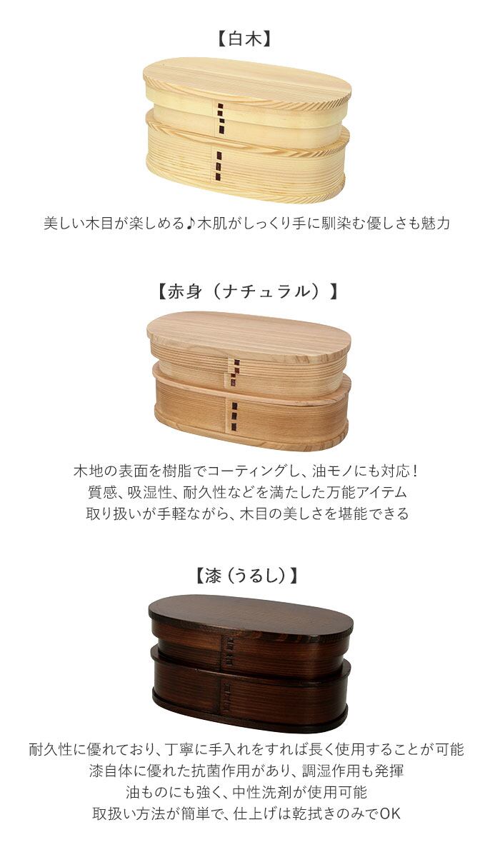 わっぱ 弁当箱 通販 小判型 2段 二段 770ml わっぱ弁当 まげわっぱ 曲げわっぱ 白木 赤身 漆 木目 お弁当箱 和風 質感 吸湿性 耐久性 ナチュラル 運動会 遠足