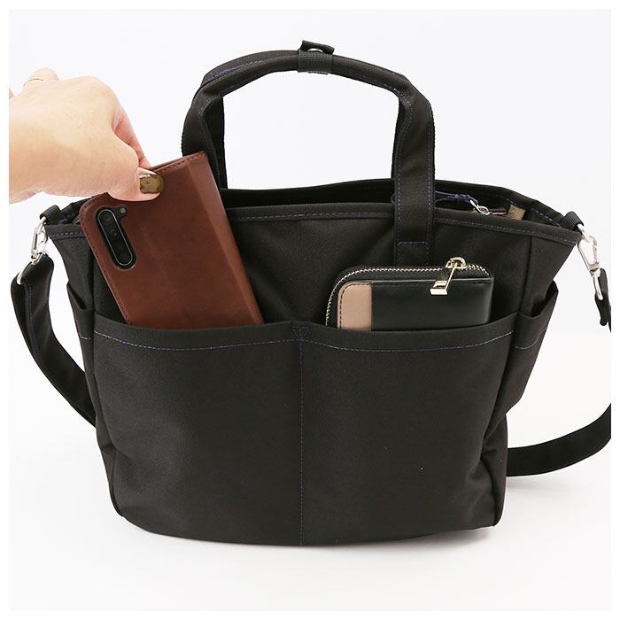 ・程よいサイズ感のトートに、使い勝手の良いポケットを装備!