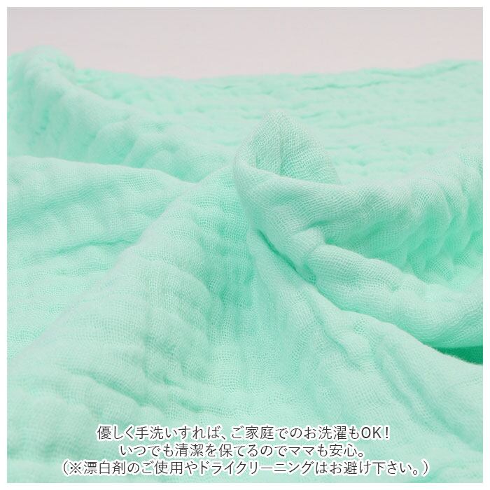 ・肌触りのソフトなコットンガーゼ生地を使用し、沐浴後の赤ちゃんのデリケートな肌にも安心の素材感。