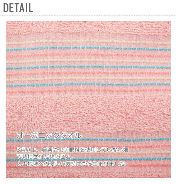 3年以上農薬や化学肥料を使用していない畑で栽培された綿で作られた、オーガニックコットンバスタオル。
