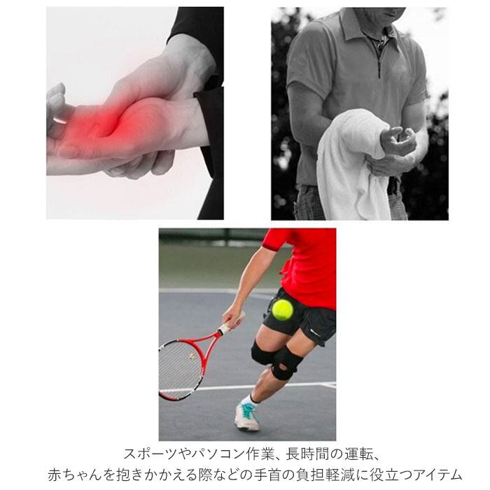 ・右手用、左手用それぞれ3サイズをラインナップ。スポーツやパソコン作業、長時間の運転、赤ちゃんを抱きかかえる際などの手首の負担軽減に役立つアイテム。