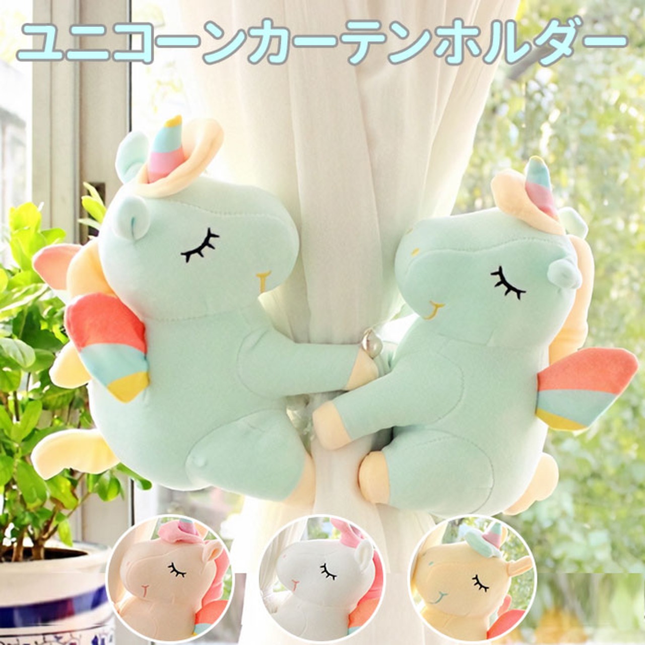 ・カーテンを抱きしめるようなユニコーンのマスコットがとっても可愛い♪キュートなカーテンホルダー。