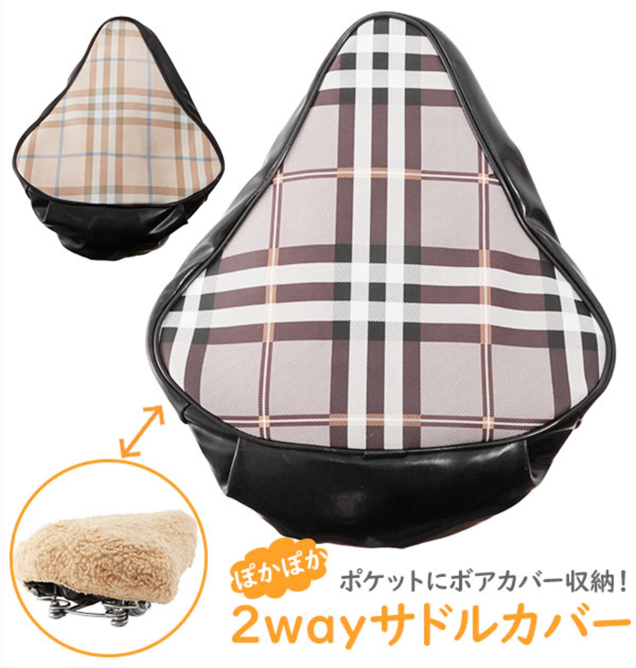 サドルカバー 2way 石野商会 通販 自転車 サドル カバー 撥水 はっ水 ボア あったか クッション ふかふか ボアカバー PVCカバー おしゃれ かわいい チェック柄 自転車サドル 雨対策 サイクルカバー ぽかぽか2wayサドルカバー