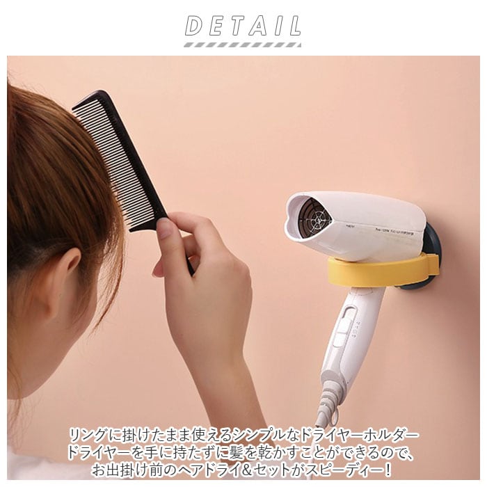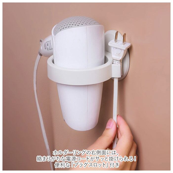 ・ハンズフリーでヘアドライ!リングに掛けたまま使えるシンプルなドライヤーホルダー。