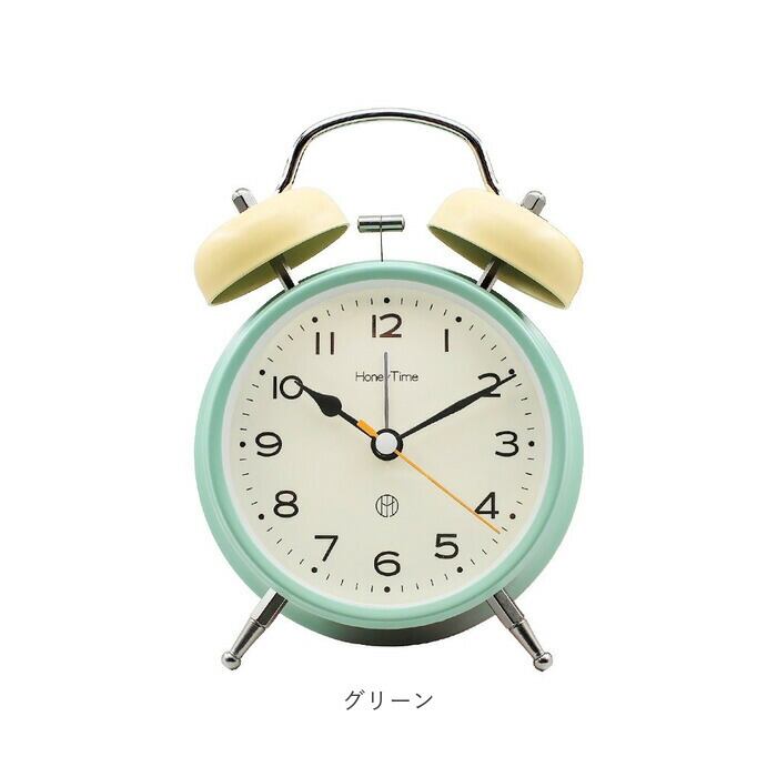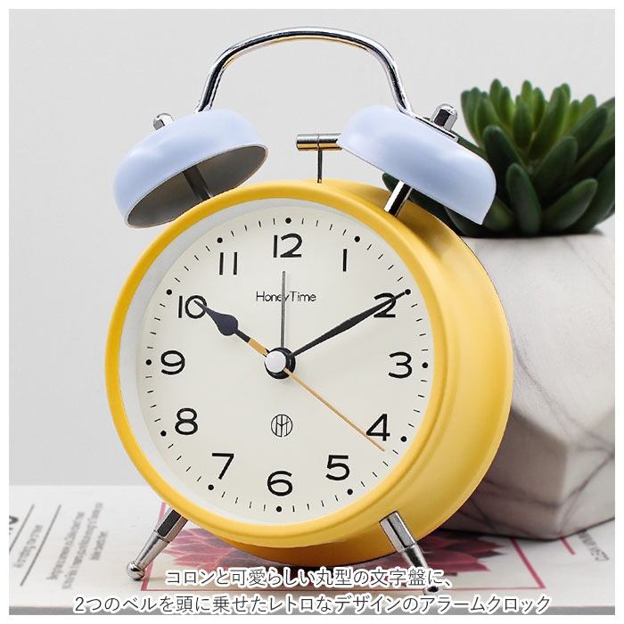 ・コロンと可愛らしい丸型の文字盤に、2つのベルを頭に乗せたレトロなデザインのアラームクロック。