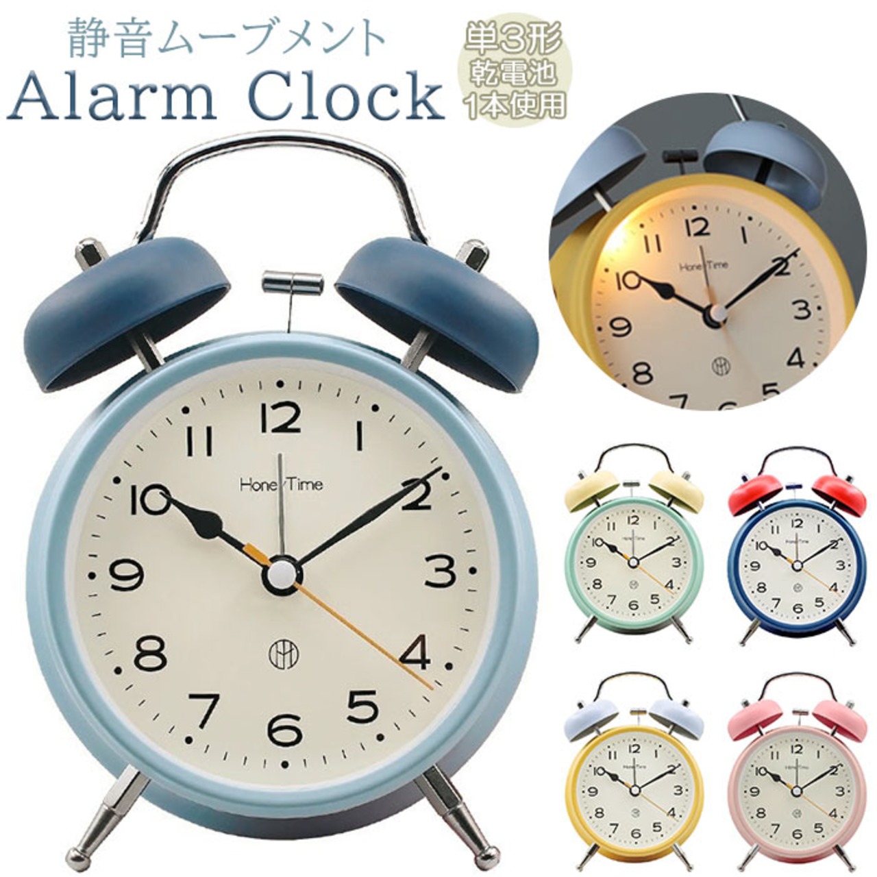 目覚まし時計 アナログ 通販 大きい ベル クロック 置き時計 アラームクロック 時計 目覚まし めざまし時計 アナログ時計 大音量 ライト 卓上 サイレントスイープ テーブル ベッドサイド 学生