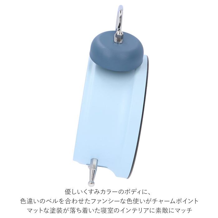 ・優しいくすみカラーのボディに、色違いのベルを合わせたファンシーな色使いがチャームポイント。マットな塗装が落ち着いた寝室のインテリアに素敵にマッチ。