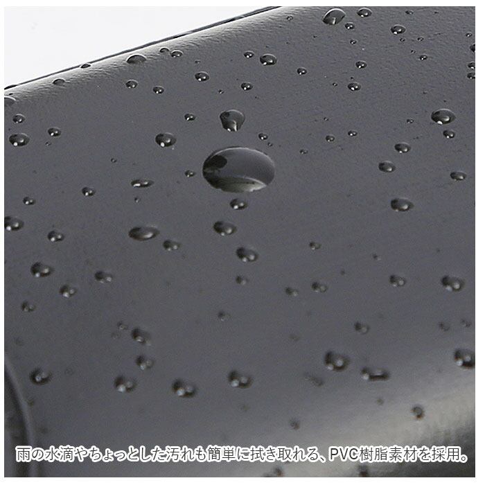 ・雨の水滴やちょっとした汚れも簡単に拭き取れる、PVC樹脂素材を採用。両サイドが配色になったちょっぴりお洒落なバイカラーデザインがワンポイント。