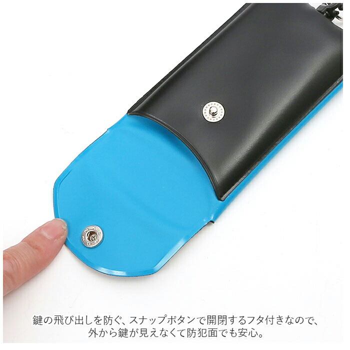 ・鍵の飛び出しを防ぐ、スナップボタンで開閉するフタ付きなので、外から鍵が見えなくて防犯面でも安心。