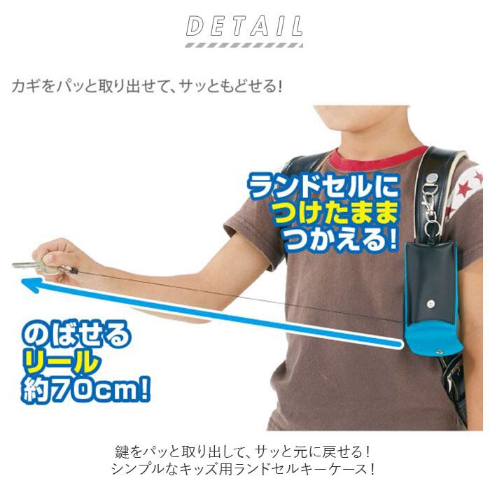・ぐ〜んと最大70cmまで伸びるリールで、鍵穴にIN!キーケースをランドセルに取り付けたまま、鍵を取り外さずに扉を開けることができて、とっても便利。
