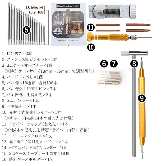 ・合計149点のツールを取り揃えた、本格腕時計修理ツールキット。