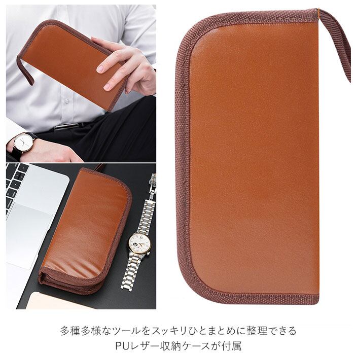 ・多種多様なツールをスッキリひとまとめに整理できるPUレザー収納ケースが付属。
