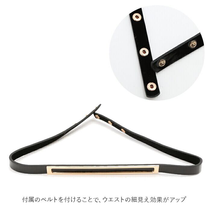 ・付属のベルトを付けることで、ウエストの細見え効果がアップ。ブラック×ゴールドの色使いが上品なアクセントに♪