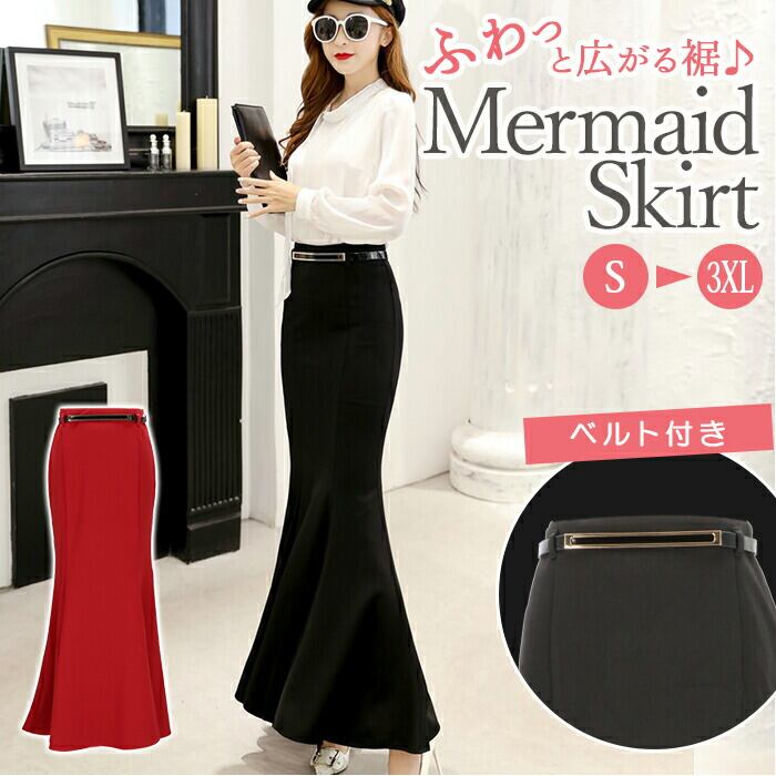 ・細見えが叶う!女性らしさ際立つマーメイドスカート(ベルト付き)が発売。