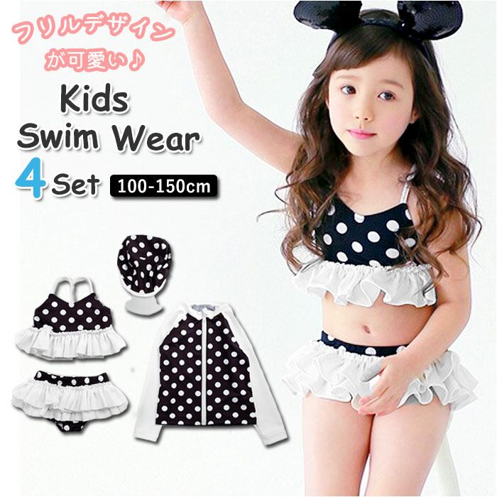 ・フリルデザインが可愛らしい「女の子用水着4点セット」が発売。