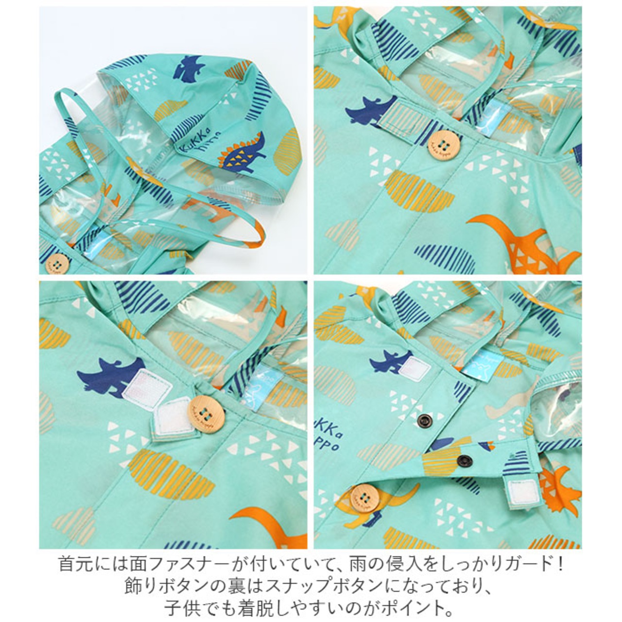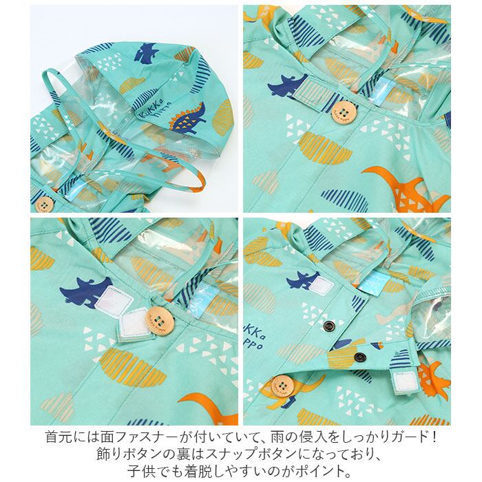 ・飾りボタンの裏はスナップボタンになっており、子供でも着脱しやすいのがポイント。