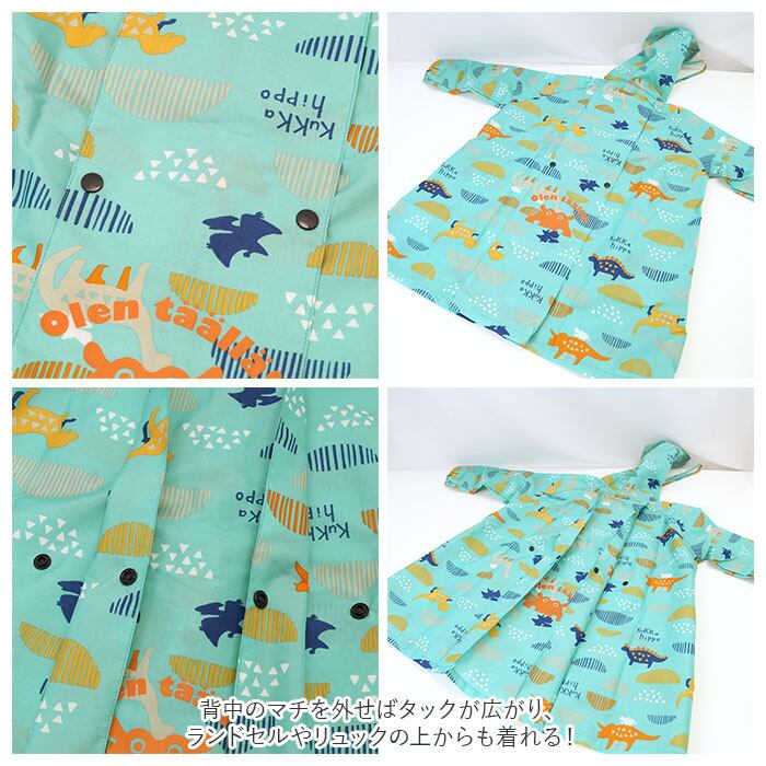 ・背中のマチを外せばタックが広がり、ランドセルやリュックの上からも着れる!