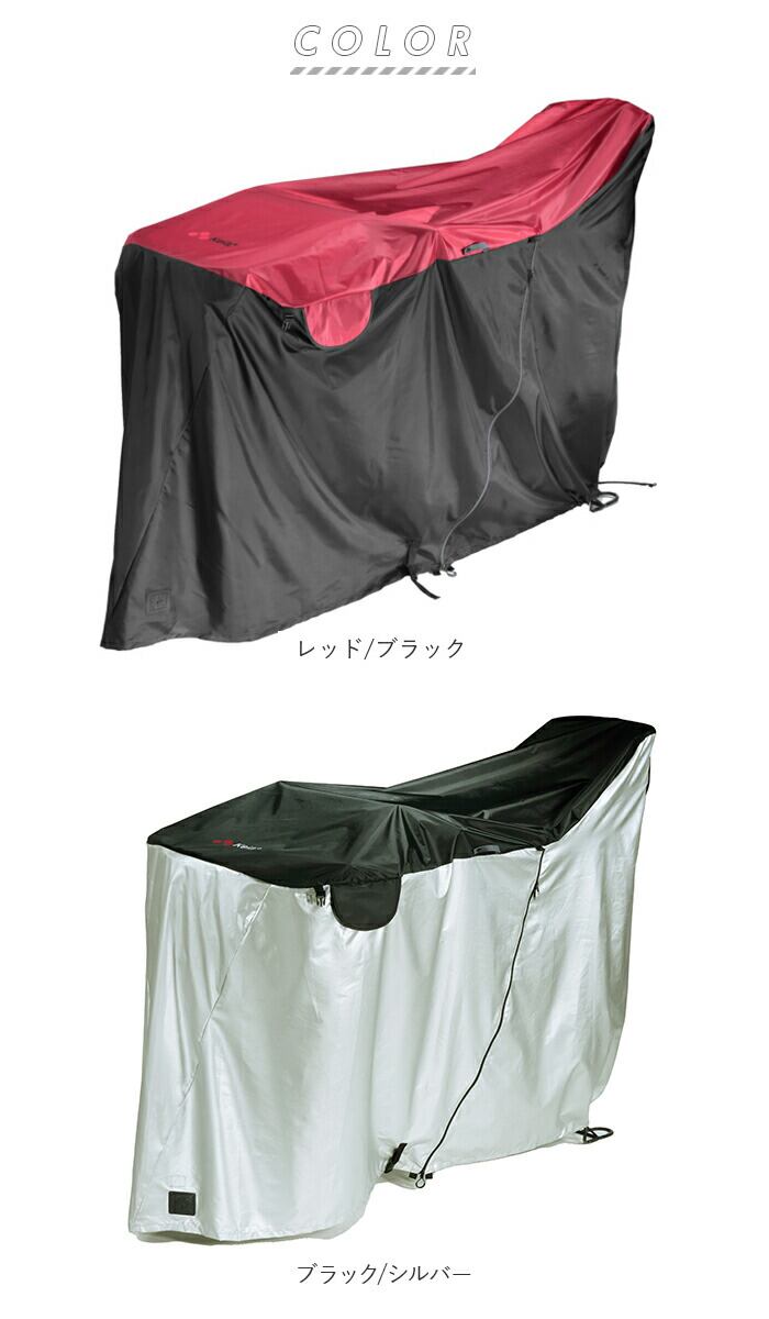 ・全長190cmまでの自転車・20〜27型電動アシスト自転車に対応し、前カゴはもちろんリヤチャイルドシートが付属の3人乗りアシスト車まですっぽりとカバー。