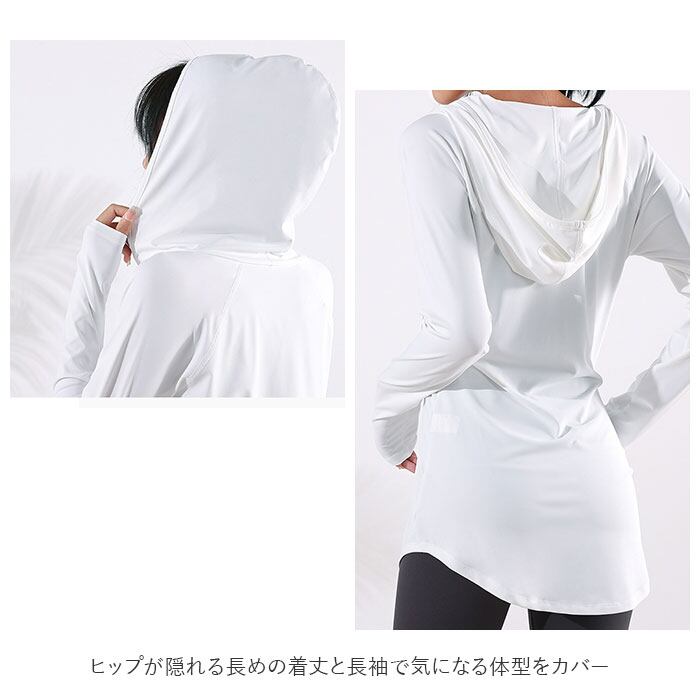 ・ヒップが隠れる長めの着丈と長袖で気になる体型をカバー。