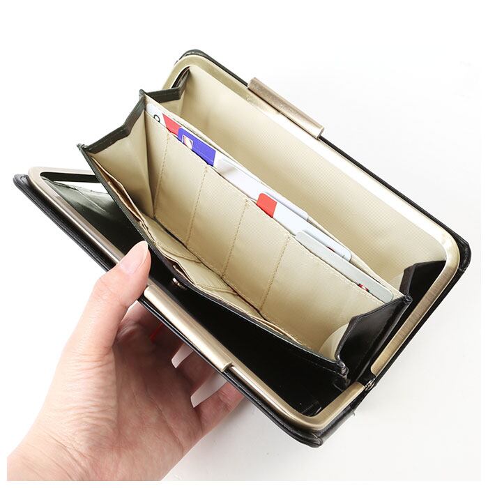 Legato Largo レガートラルゴ 財布 長財布 通販 ボックス型小銭入れ がま口 レディース おしゃれ シンプル きれいめ 使いやすい 現金派 コインケース 大容量 ロングウォレット カード収納 縦入れ 合皮 PU パパッと、ウォレット マイルドスキンフェイクレザー LJ-L0092