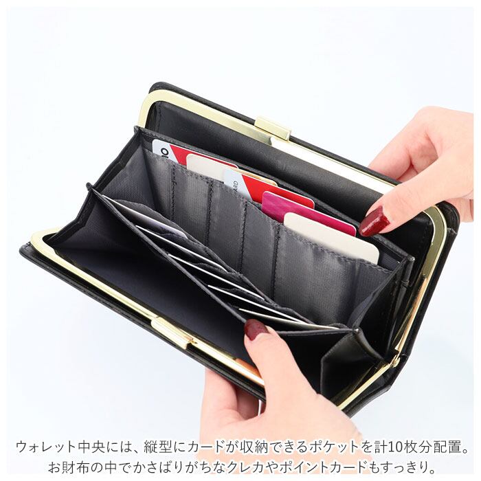 ・ウォレット中央には、縦型にカードが収納できるポケットを計10枚分配置。お財布の中でかさばりがちなクレカやポイントカードもすっきり。