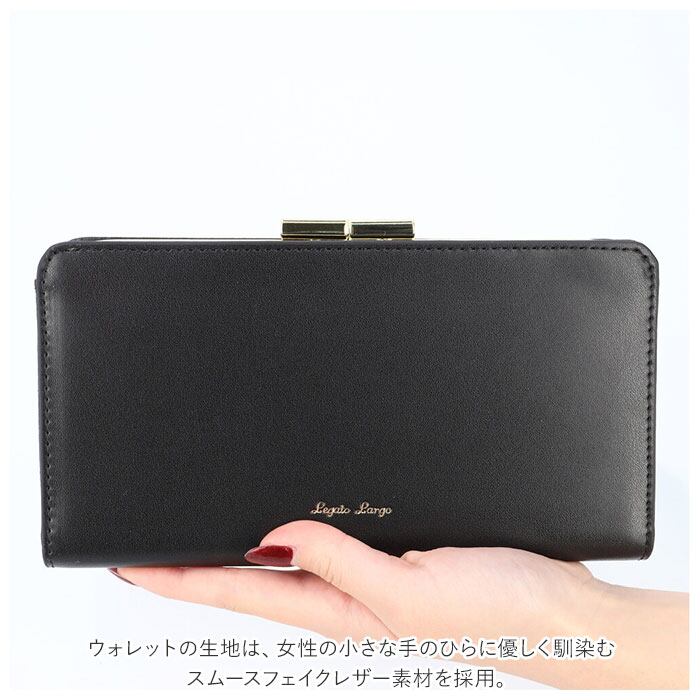 レガートラルゴ 財布 LJ-L0122 Legato Largo 通販 長財布 レディース 小銭入れあり 使いやすい ボックス型小銭入れ がま口 がまぐち カード収納 いっぱい 合皮 光沢 おしゃれ シンプル 上品 きれいめ 通勤 通学 パパッと、ウォレット ノーブルスムースフェクレザー LJ-L0122