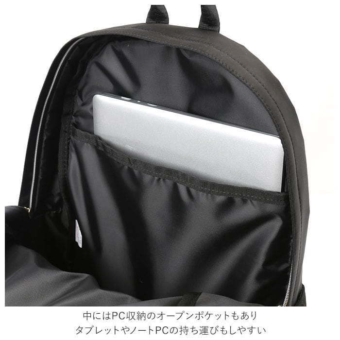 ・メインは容量は14L分の荷物が収納できるサイズ。さらにA4サイズに対応。中にはPC収納のオープンポケットもあり、タブレットやノートPCの持ち運びがしやすい仕様。