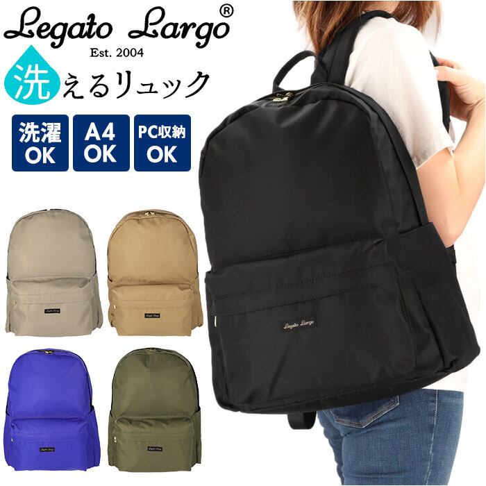 Legato Largo レガートラルゴ リュック ナイロン 通販 洗える 洗濯機 レディース 通勤 通学 A4 PC収納 背面 セキュリティーポケット シンプル メンズ 男女兼用 旅行 おでかけ リュックサック バックパック 洗えるナイロン 洗えるグレイスフルナイロン LT-D1152
