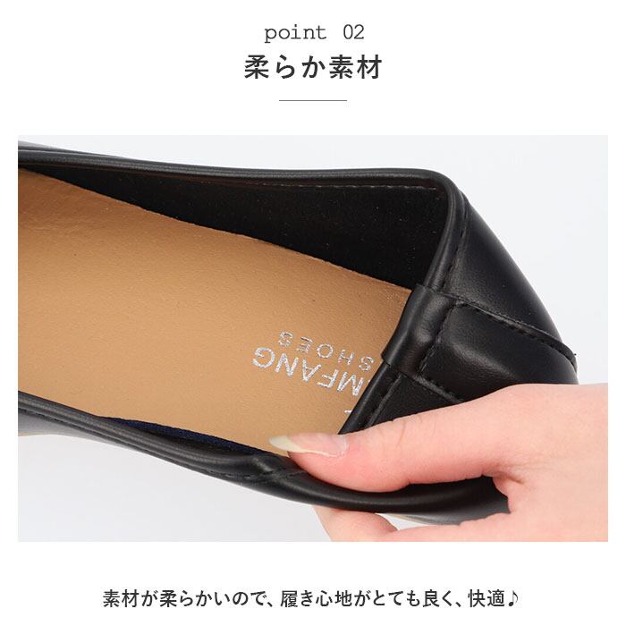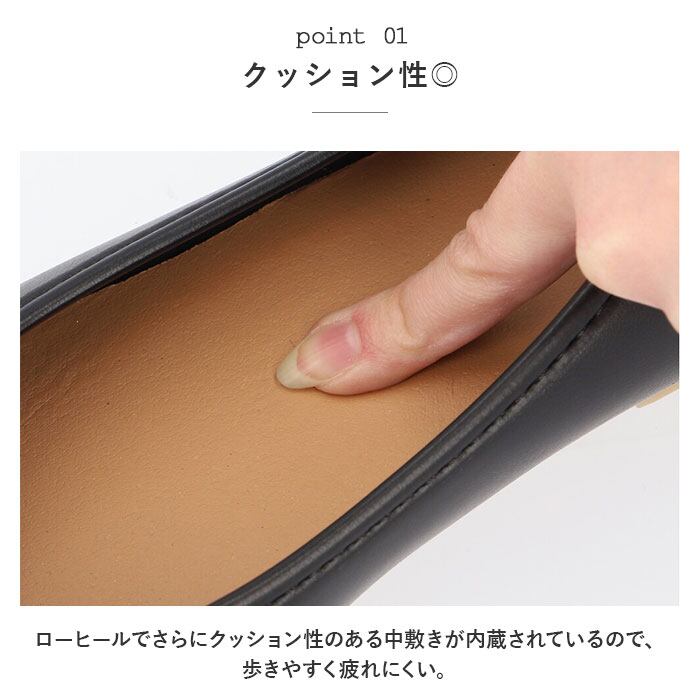 ・ローヒールでさらにクッション性のある中敷きが内蔵されているので、歩きやすく疲れにくい。
