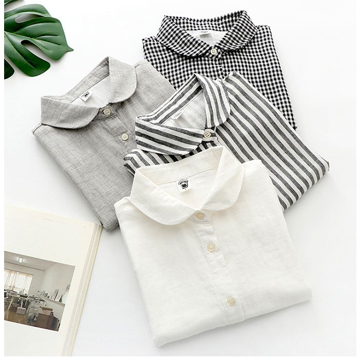 ・モノトーンカラーのシンプルな丸襟シャツが登場!