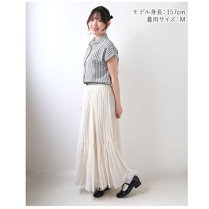 ・かわいらしい丸襟とシンプルなデザインなので、スカートにもパンツスタイルにも合わせやすい。