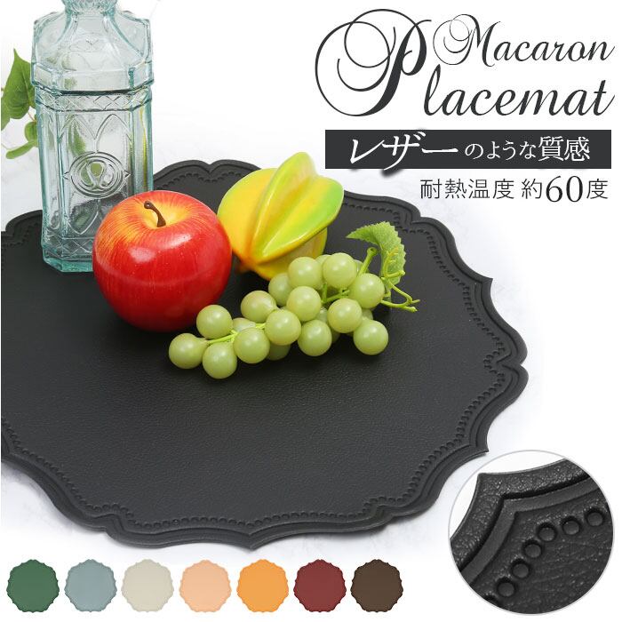 ランチョンマット 北欧 通販 撥水 プレイスマット ランチマット ディスプレイマット マカロン Macaron 約35cm 円形 変形 ビニール レザー カラー ギフト モダン おしゃれ